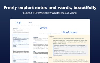 KMate - Gerenciador de Recortes & Vocabulário para Kindle coleta suas notas, destaques e palavras de vocabulário do Kindle e as exibe em uma interface estruturada e pesquisável. Organiza o conteúdo por título do livro, autor e data, facilitando a revisão de citações ou notas de estudo. Você também pode exportá-las para formatos como PDF, Markdown e Word.
