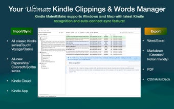 KMate - Gerenciador de Recortes e Vocabulário para Kindle é uma ferramenta utilitária projetada para ajudar os usuários do Kindle a organizar, compilar e estudar suas notas salvas de seu dispositivo ou aplicativo Kindle. Ele suporta e sincroniza notas com muitos novos modelos de Kindle, como Paperwhite, Oasis e Scribe.